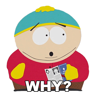 Eric Cartman from South Park looks confused, holding a magazine and asking 'WHY?' with a questioning expression.