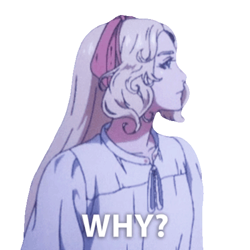 Maria Renard from Castlevania Nocturne looks surprised and asks 'Why?' in this animated sticker.