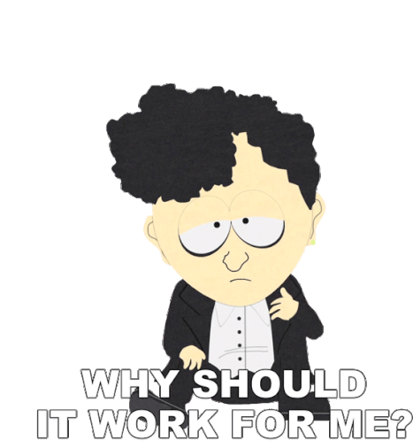 Michael from South Park asks "Why Should It Work For Me?" with a skeptical expression.