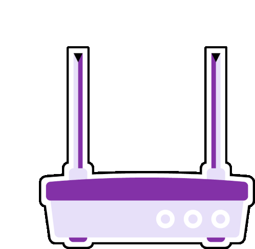 An animated sticker featuring a stylized purple and white Wi-Fi router with a signal icon.