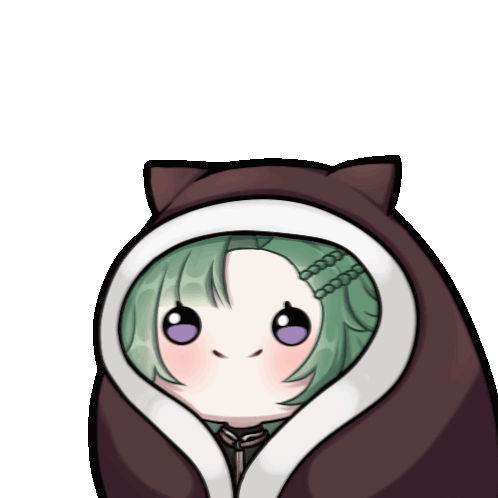 Caelan Risu, the adorable Squirrel Vtuber, wiggles and dances in a cute anime style, wearing a cozy cat-eared cloak.