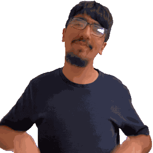 a man with glasses and a beard is making a gesture with his hands