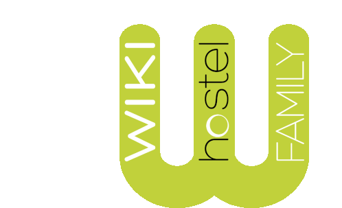 Animated logo featuring 'Wiki Hostel Family' and the slogan 'One People One World' in a vibrant green 'W' shape.