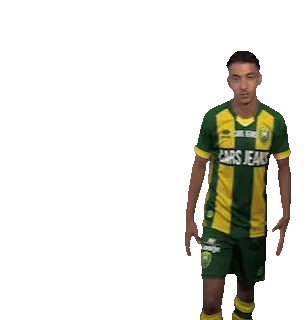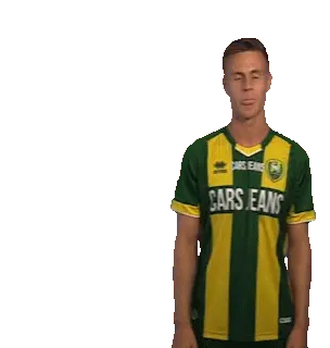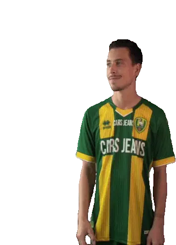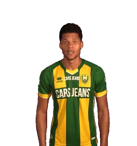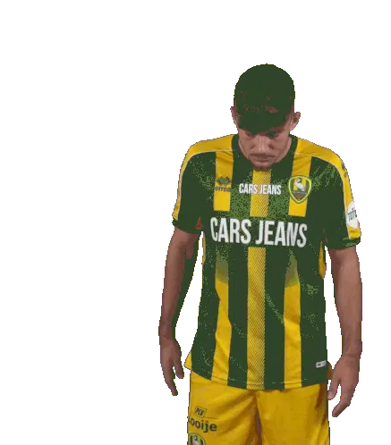 a man wearing a green and yellow jersey that says cars jeans on it