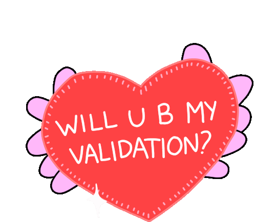 A sparkling red heart asks 'Will U B My Validation?' in this cute Ana Curbelo sticker, perfect for Valentine's Day.