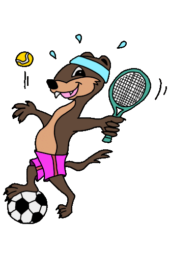 Willy Wezel Wuust, the energetic weasel character, is actively engaged in playing both tennis and soccer.