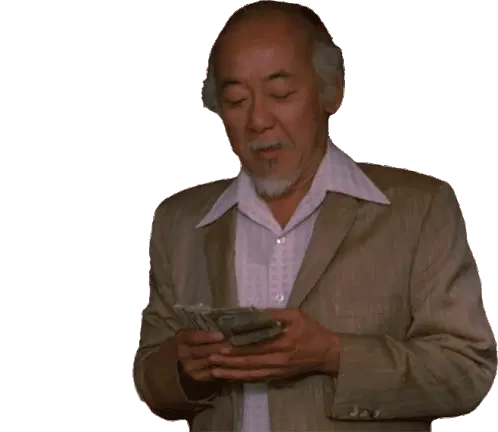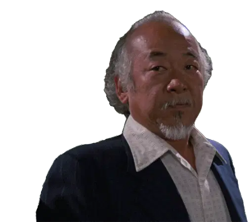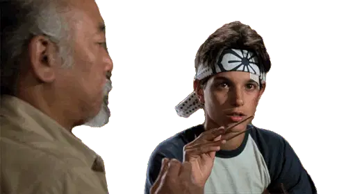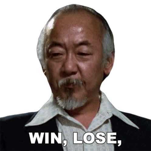 Mr. Miyagi, played by Pat Morita, shares his iconic wisdom: 'Win, Lose, No Matter,' emphasizing the importance of effort over outcome.