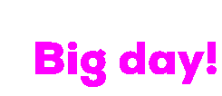 Animated sticker featuring the phrase 'Big day!' in pixelated pink letters, with a subtle wobbly or windy effect.