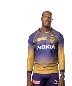 Carlos Brathwaite, wearing his KKR jersey, gives a playful and flirty wink to the camera.