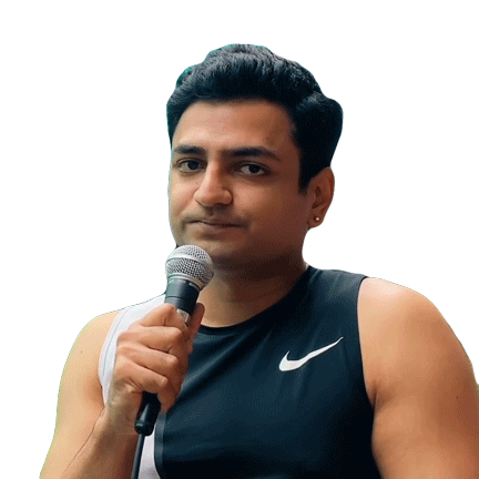 Kenny Sebastian winks playfully while holding a microphone, wearing a black and white athletic top with a Nike logo.