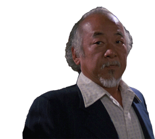 Mr. Miyagi (Pat Morita) from The Karate Kid Part II winks knowingly, conveying a sense of 'I told you so' or reassurance.