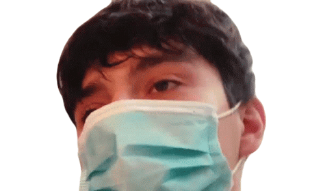 Jan Dabrowski winks playfully while wearing a light blue surgical mask, showing a flirty expression.
