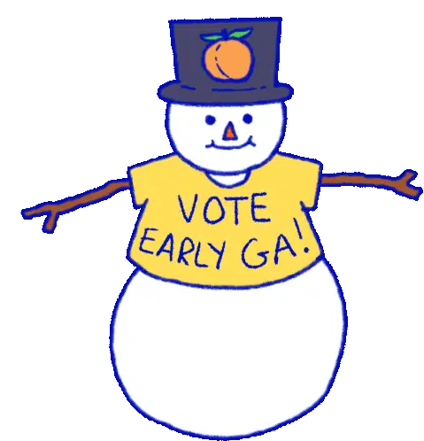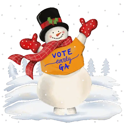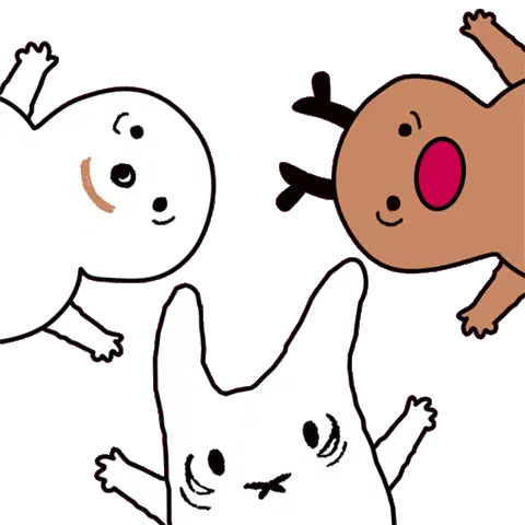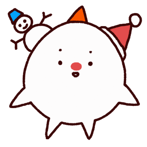 A charming white blob-like character wearing festive winter hats, with a tiny snowman perched on its head, celebrating the winter holidays.