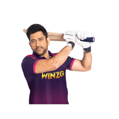 MS Dhoni, the legendary cricketer, is on strike, ready to bat for Winzo in his purple jersey.