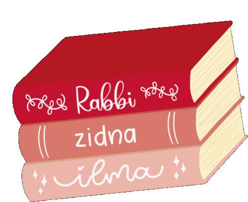 Animated sticker of stacked books with 'Rabbi Zidna Ilma' and 'Wisdom' text, symbolizing knowledge and learning.