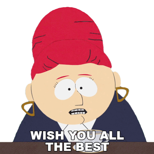 Sheila Broflovski from South Park delivers a heartfelt message, wishing you all the best with a warm expression.