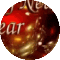 A festive red Christmas ball with 'Happy New Year' text, sparkling with golden lights, perfect for holiday wishes.