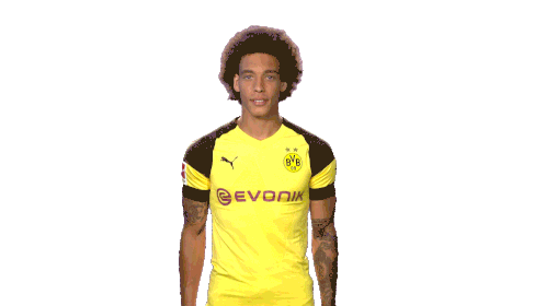 Axel Witsel, wearing a BVB jersey, smiles and crosses his arms in a cool celebration gesture.