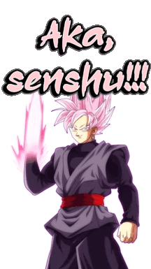 Goku Black in a dynamic WKF Kumite stance, ready for action with the call 'Aka, Senshu!' from Dragon Ball Z.
