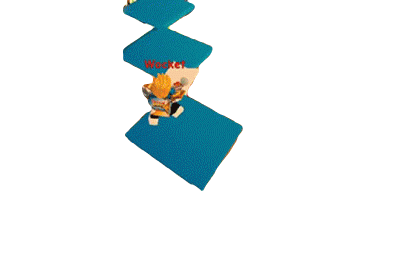Wocket, the character from Roblox Magic Simulator, runs and steps along a path of blue diamond platforms.