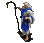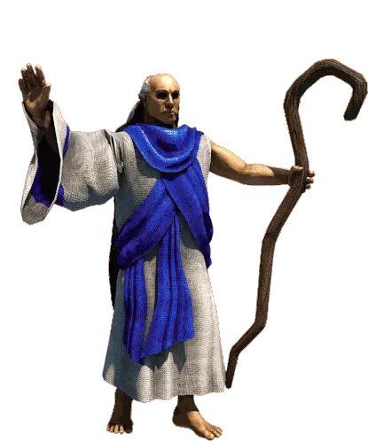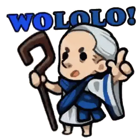 A pixelated figure in a blue robe, reminiscent of an Age of Empires monk, performs the iconic 'Wololo' action. A classic gaming reference.