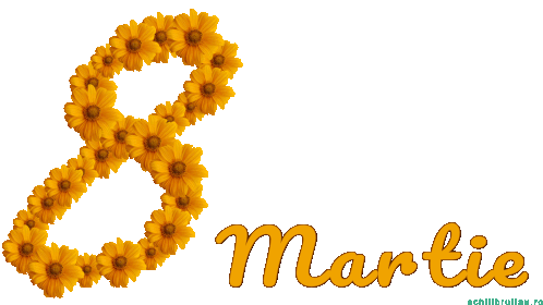 Animated sticker celebrating International Women's Day on March 8th, featuring a number '8' made of yellow flowers and a warm greeting.