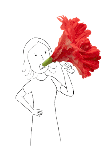 A powerful Womens Day sticker featuring a woman shouting a vibrant red flower, symbolizing strong voice and feminism.