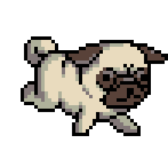 An animated pug dog runs incredibly fast across the screen, with its legs a blur, conveying a sense of urgency and speed.