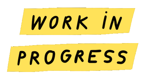 Nina Cosford's animated yellow sticker featuring the clear text 'WORK IN PROGRESS'.