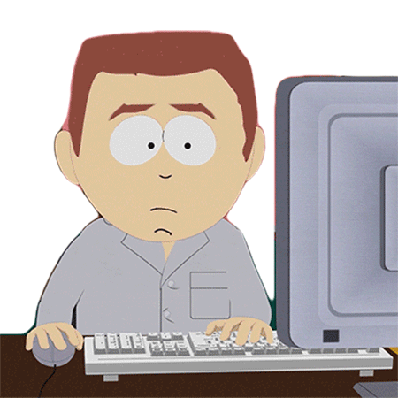 Stephen Stotch from South Park sits at a computer, typing and looking unfulfilled while working.