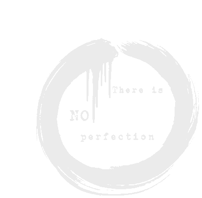 A minimalist sticker featuring a brushstroke circle with the text 'NO There is perfection', representing the Workshop Gym's philosophy.