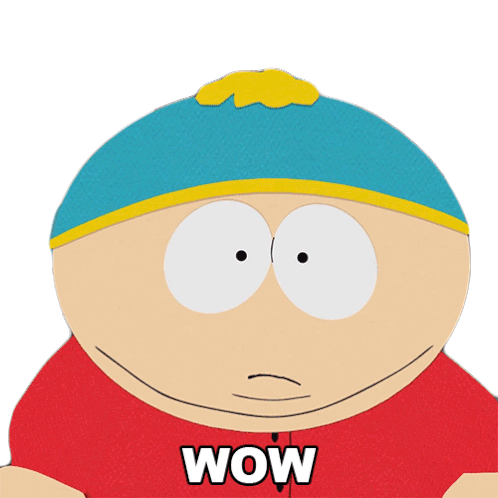 Eric Cartman from South Park looking amazed with wide eyes and an open mouth, with 'WOW' text.