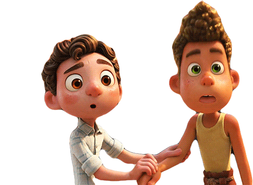 two cartoon boys are standing next to each other and holding hands .