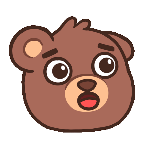 A cute cartoon teddy bear with a surprised and wide-eyed expression reacts with an open mouth, conveying shock or amazement.