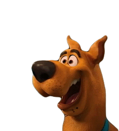 Scooby Doo, voiced by Frank Welker, expresses extreme surprise with wide eyes and an open mouth, perfect for a 'wow' moment.