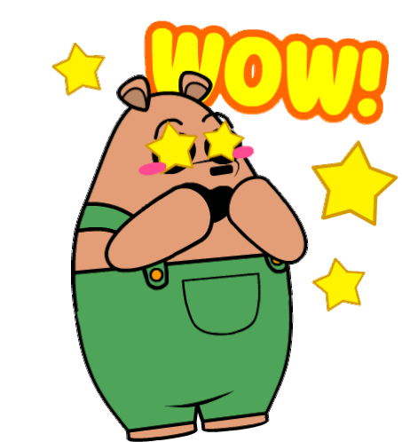 A surprised cartoon bear-like character reacts with wide eyes and an open mouth, exclaiming 'Wow Wow Wow'.