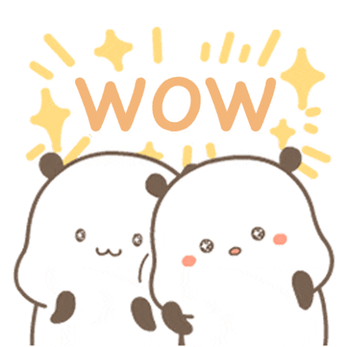 Two adorable cartoon pandas react with surprise as the word 'WOW' appears above their heads, sparkling with excitement.