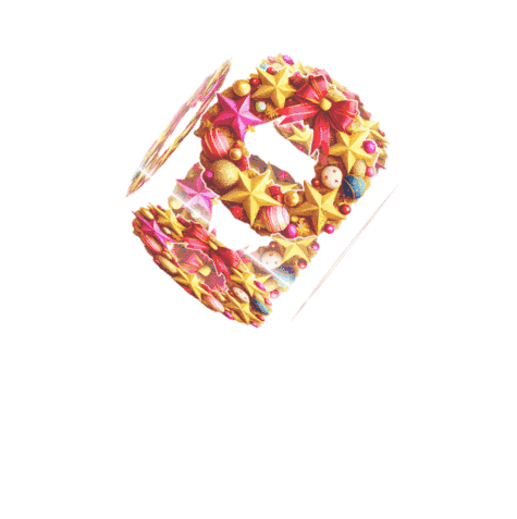 A vibrant, glowing wreath rotates inside a transparent cube, wishing a Happy New Year 2024 with neon text.