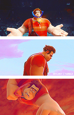 Wreck-It Ralph experiences a range of emotions, from triumph with his medal to introspection and a moment of self-sacrifice.