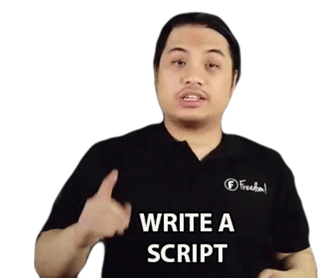 Nold points and instructs, saying 'Write A Script', encouraging creative writing, planning, or outlining a project.