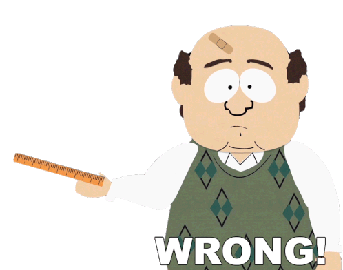 Richard Adler from South Park sternly points with a ruler and declares 'WRONG!' in this animated sticker.