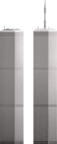 two tall buildings with a tower on top of them