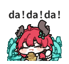 a cartoon of a girl with horns and the words da ! da ! da ! above her
