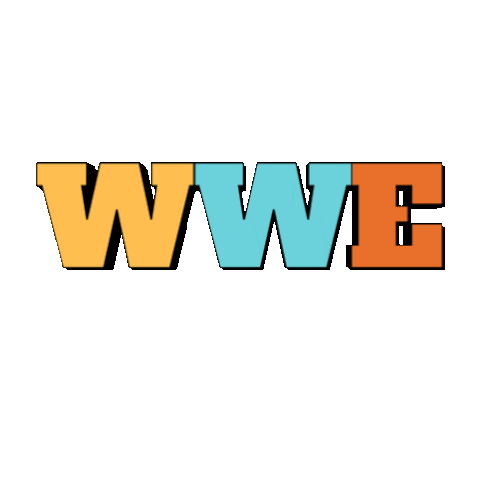 Animated sticker showing the letters MWE transforming into the iconic WWE logo with vibrant colors.