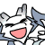 A cheerful cartoon animal, possibly a wolf or dog, laughing heartily with its mouth wide open, expressing joy and amusement.