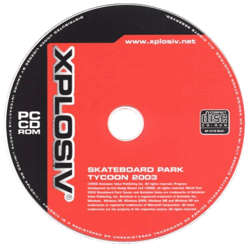 a cd for xplosiv skateboard park tycoon 2003 on a white background