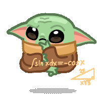 Baby Yoda, the adorable character, ponders complex mathematical equations and formulas, looking thoughtful and a bit confused.