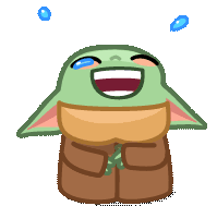Animated sticker featuring Baby Yoda (Grogu) from Star Wars, showcasing a range of adorable emotions from laughter to sadness.