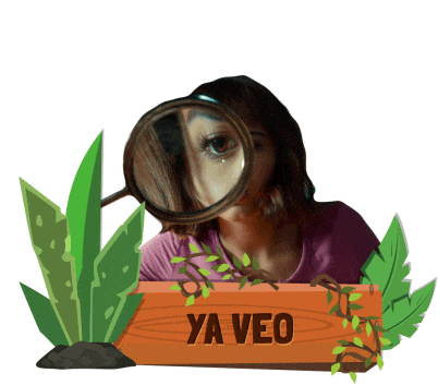 Isabela Moner as Dora looks through a magnifying glass, surrounded by jungle plants, with the Spanish text 'YA VEO' (I see).