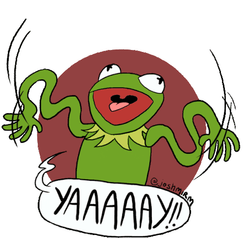 Kermit the Frog joyfully raises his arms with an open mouth, exclaiming 'YAAAAY!!' in a speech bubble.